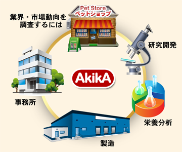 AkikA日本上井泉株式会社株式会社はペットフードの専門企業であり、ペットの健やかな成長を研究開発理念とします。